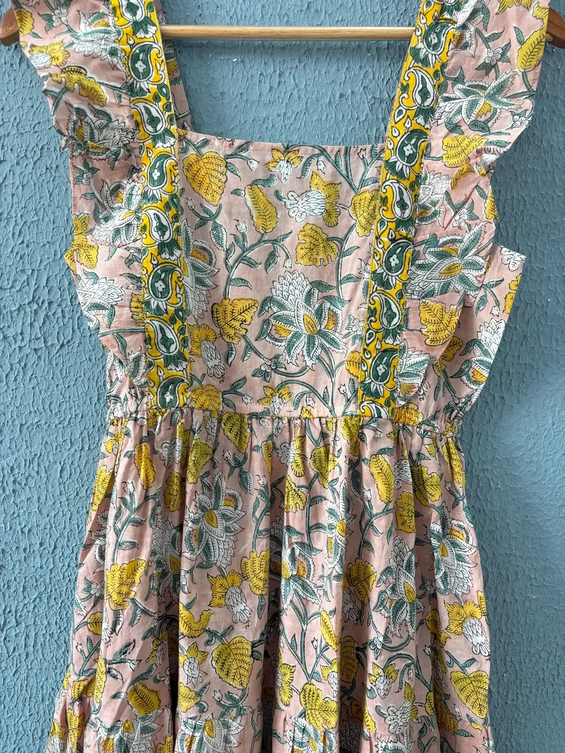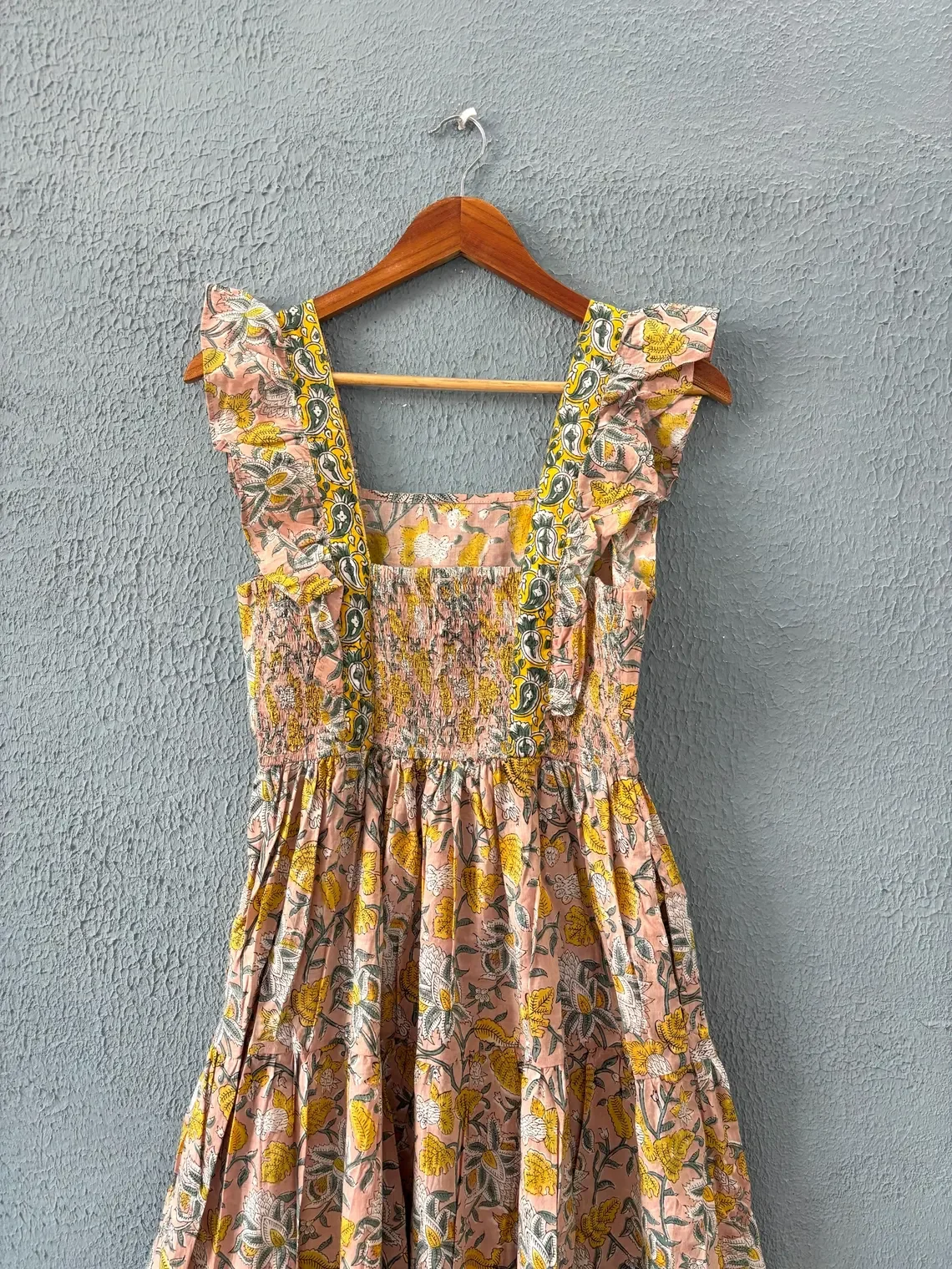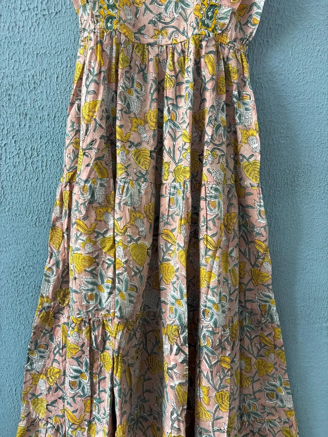 Handmade Cotton Dress Solid Pattern Maxi Length Block Print Square Neck Long Dress for Summer Winter Autumn Seasons